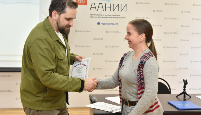 Благодарность Руководителя Федеральной службы по гидрометеорологии и мониторингу окружающей среды объявлена Анне Тимофеевой – научному сотруднику отдела ледового режима и прогнозов ААНИИ.
