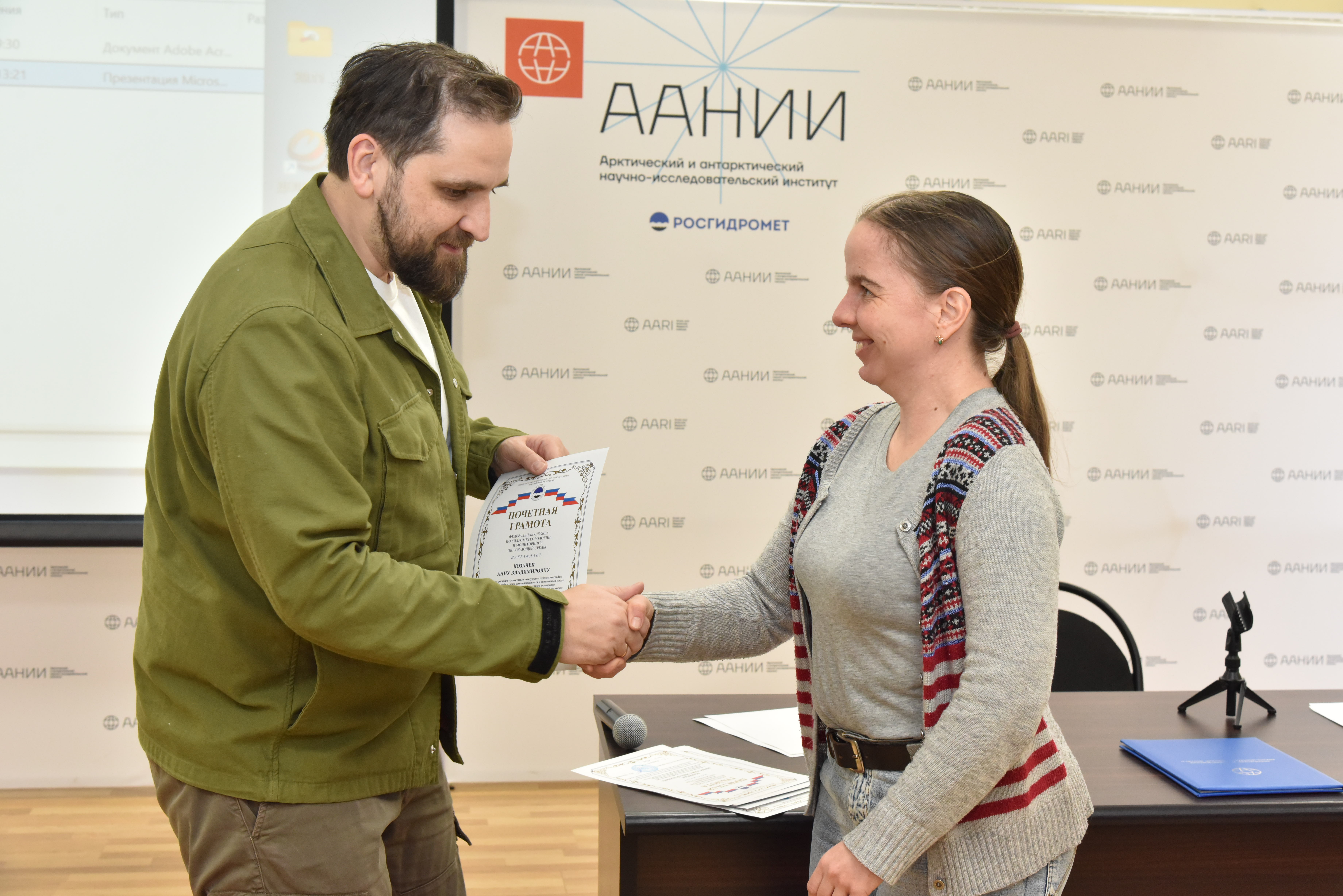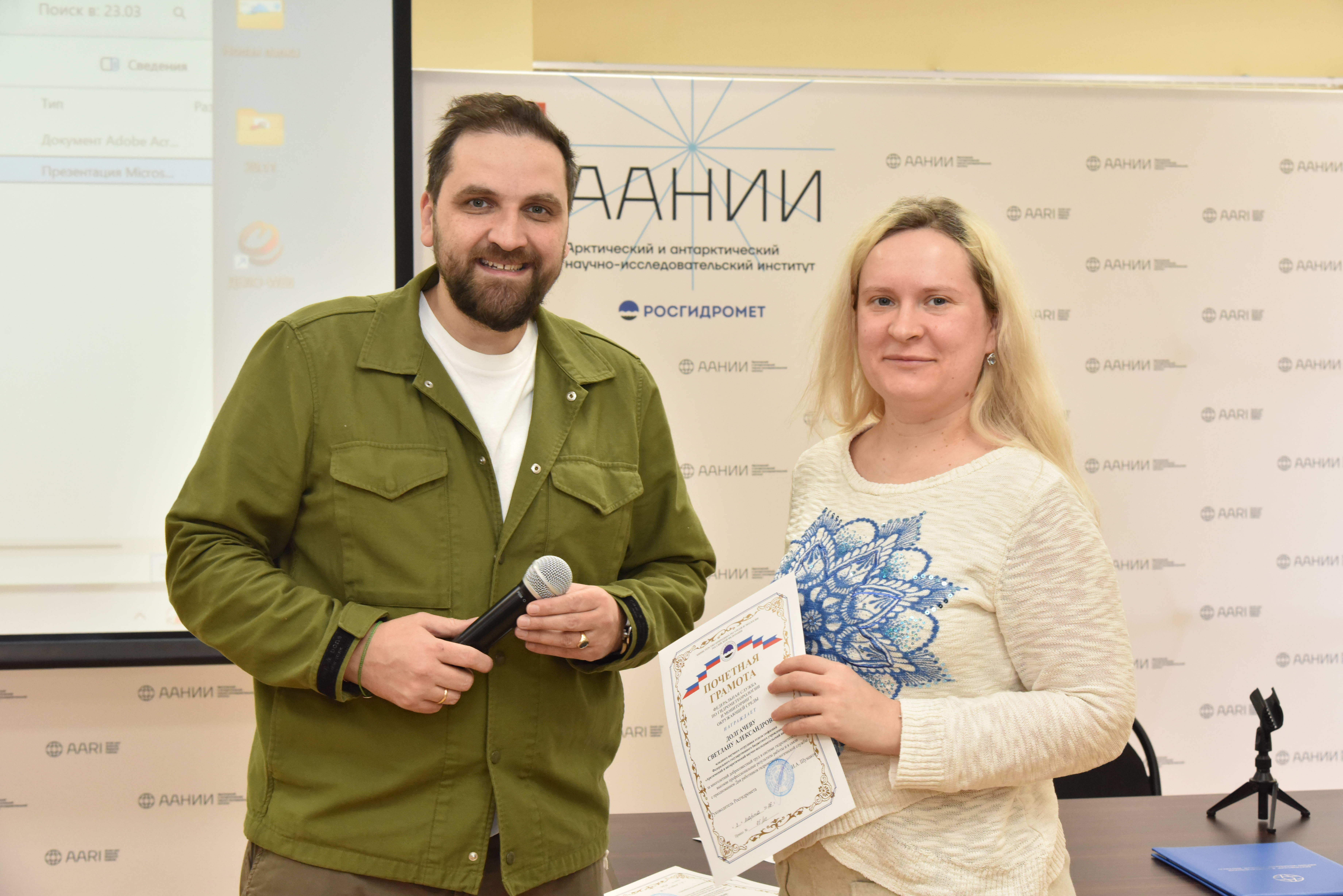 Почетными грамотами Федеральной службы по гидрометеорологии и мониторингу окружающей среды были отмечены сотрудники отделов: ледового режима и прогнозов; географии полярных стран; лаборатории «Арктик-шельф» им. Г.К. Зубакина; геофизики; океанологии; Логистического центра Российской антарктической экспедиции; редакционно-издательской группы; взаимодействия океана и атмосферы; фонда данных и научно-технической информации.